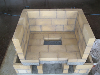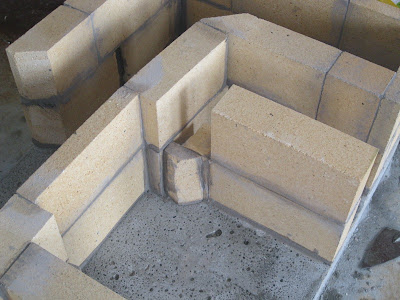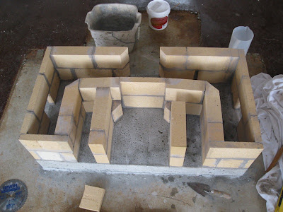 The following photos are a course by course synopsis of the progress so far. All joints are thin and laid with refractory cement - Meeco's Red Devil (because of availability)